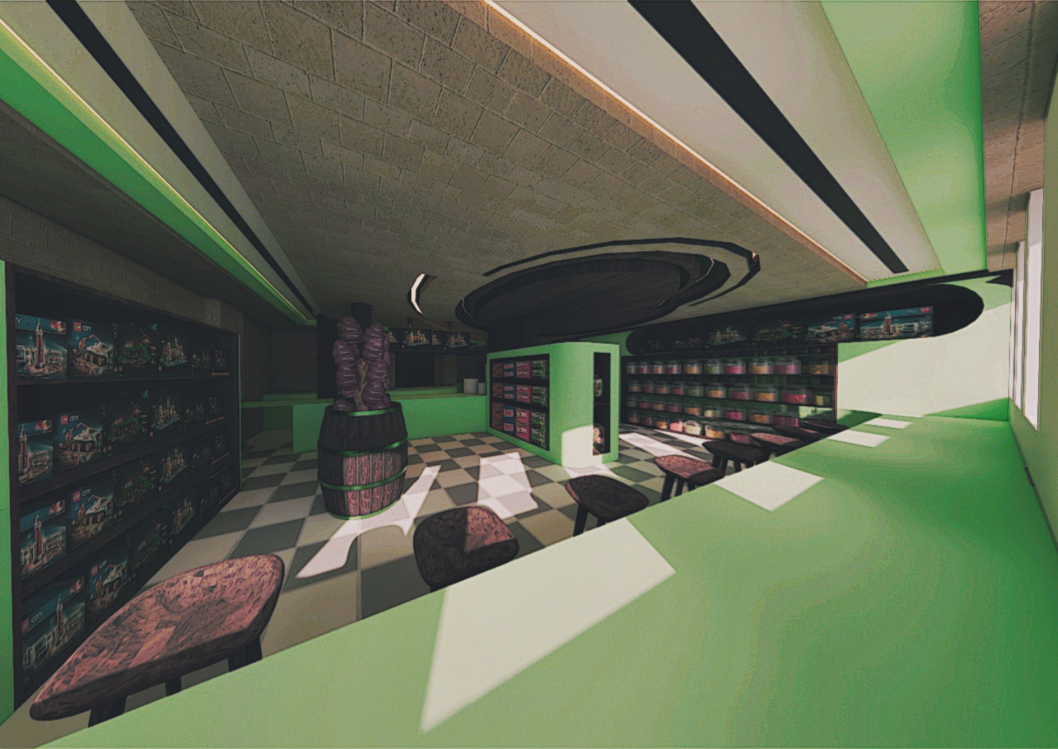 Delve into the full 3D design of Z’s Karam Hotel’s Honeydukes Café, inspired by retro arcades. This document presents AI-generated models of timber counters, neon accents, and pet-friendly seating, ensuring compliance with accessibility and safety regulations.